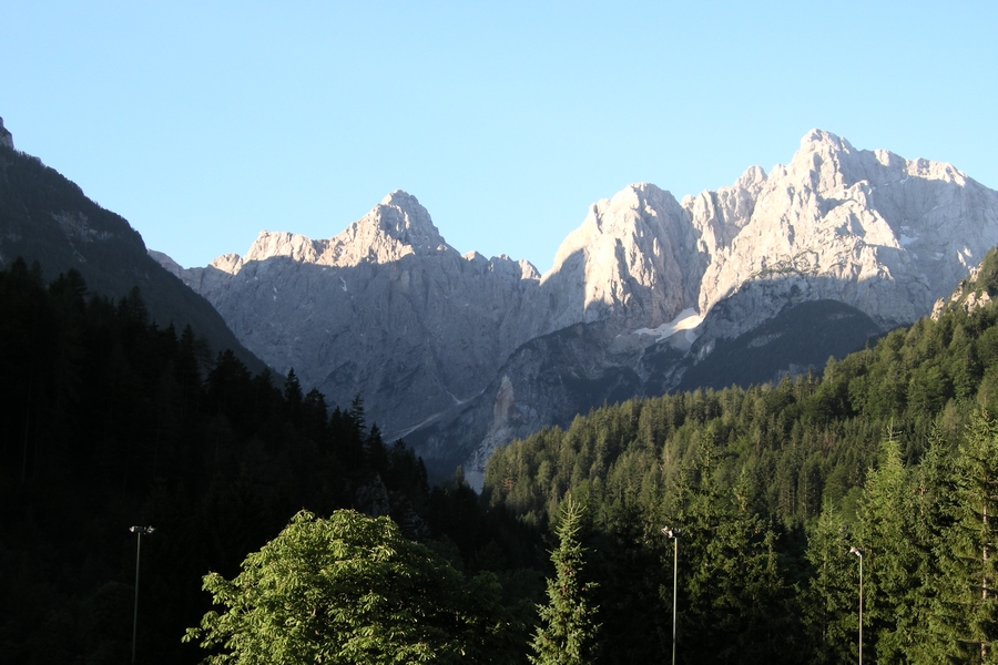 Members of the party flew as individuals from the UK although all were booked by HF on the same flight from Gatwick unless any were entirely independent travellers. Our flight was with the Slovenian company Adria Airways and apart from a short delay it was entirely comfortable and uneventful. A tasty salad served by most courteous staff made the experience all the more enjoyable. The Brnik terminal near Ljubljana is similar in size to our provincial airports and thus the arrivals process turned out to be remarkably speedy. As advised, the HF leader duly awaited us in the small arrivals area and we soon found ourselves sitting in a smart transfer coach. Slovenia has a good two-lane motorway system and this took us half way to Kranska Gora which is situated in an area known as the Julian Alps, right in the north west corner of the country. A good 'A' road completed the journey during which we were briefed by our Leader whilst admiring the passing dramatic mountain scenery.